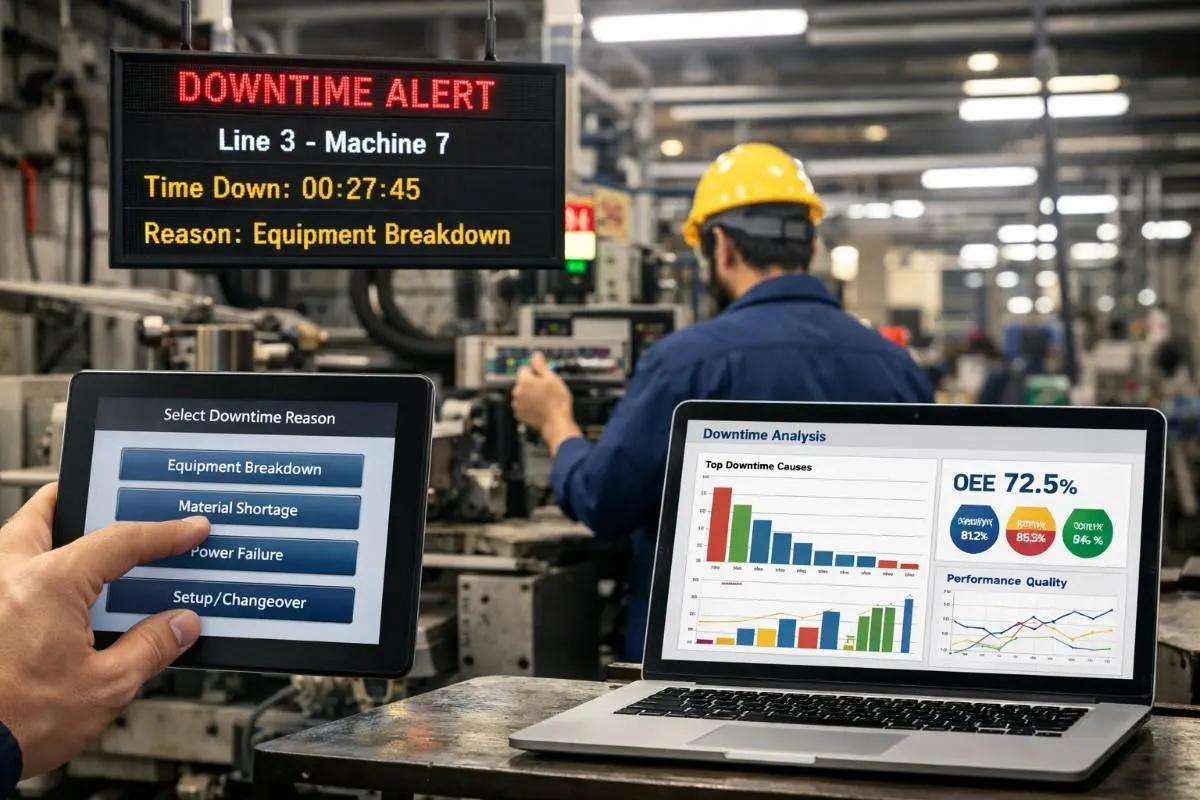 Every factory manager knows the feeling. The shift ends, the output numbers come in short of target, and the reason is a machine that stopped for forty minutes in the middle of the day without anyone logging the cause, notifying maintenance, or adjusting the production schedule to compensate. That scenario plays out in factories around the world every single day, and it is entirely preventable. Machine downtime tracking and reporting is the practice of capturing every stoppage event automatically, documenting its duration and cause accurately, and turning that data into actionable intelligence that reduces future downtime and improves overall production efficiency.