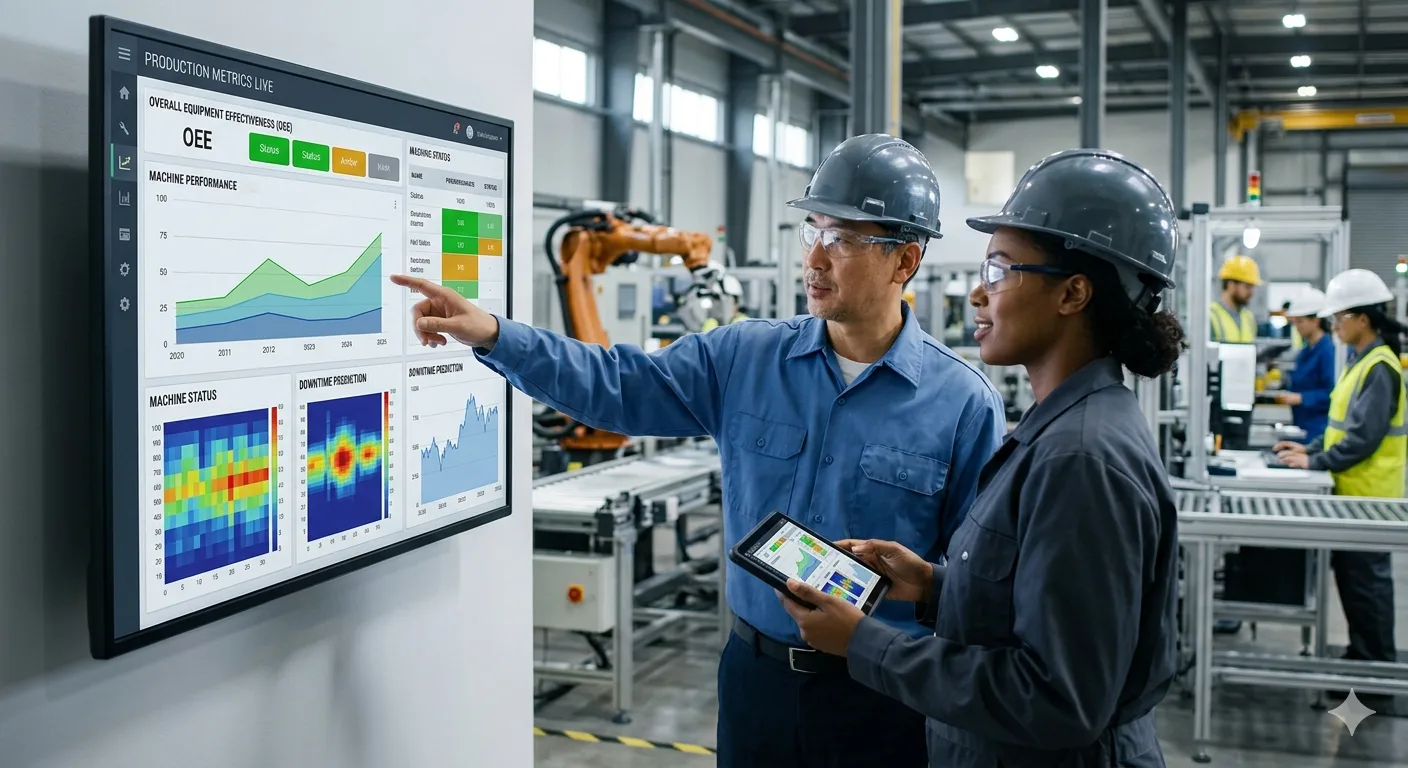 Instead of analyzing individual machines or lines, manufacturers can monitor performance across the entire plant. This includes production output, downtime, quality metrics, and resource utilization.